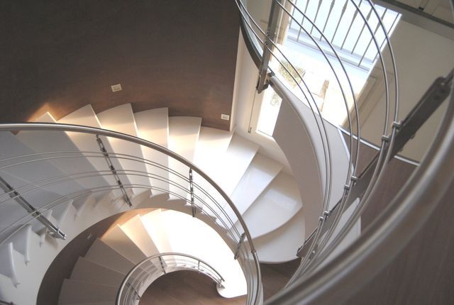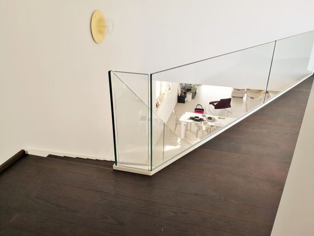Nuova SIME progetta, realizza e installa ringhiere in legno-metallo, acciaio inox e cristallo per scale di muratura.